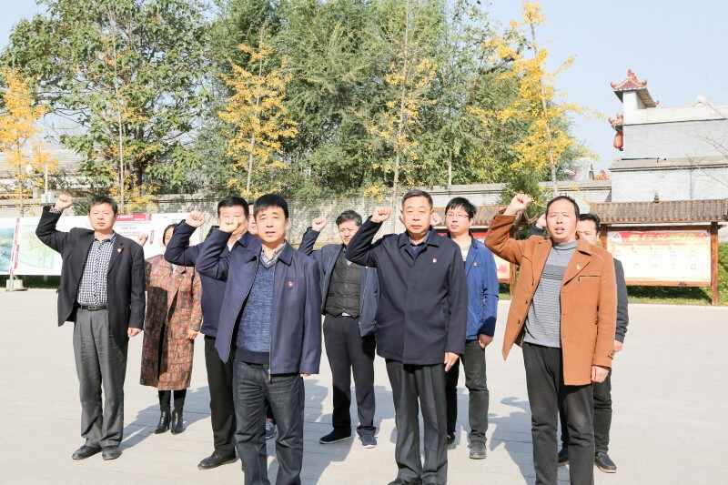 清丰县政协全体党员干部在冀鲁豫边区抗战史实展馆前,面对鲜红党旗,重温入党誓词。