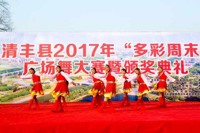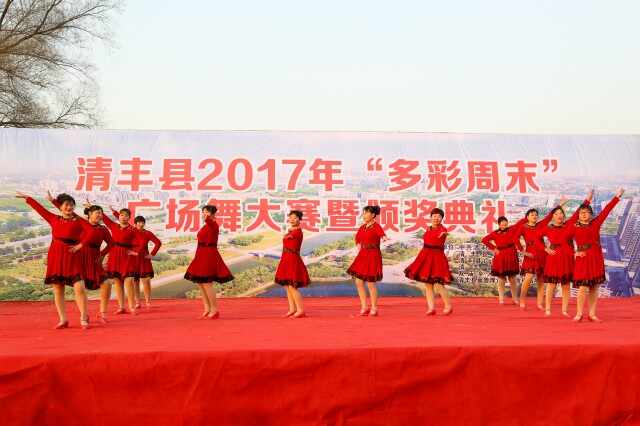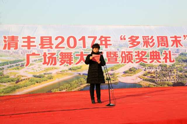 12月7日,由县委宣传部、县总工会、县文明办、县文广局、县广播电视台、县文联、县妇联、县体育中心、县双庙乡人民政府 、县冀鲁豫边区革命根据地旧址纪念馆联合主办的2017年“多彩周末”广场舞大赛暨颁奖典礼在单拐美食街北广场举行。县委常委、宣传部长岳春青,县人大副主任左海义,县政协副主席赵怀欣,县总工会主席葛英华出席颁奖典礼。