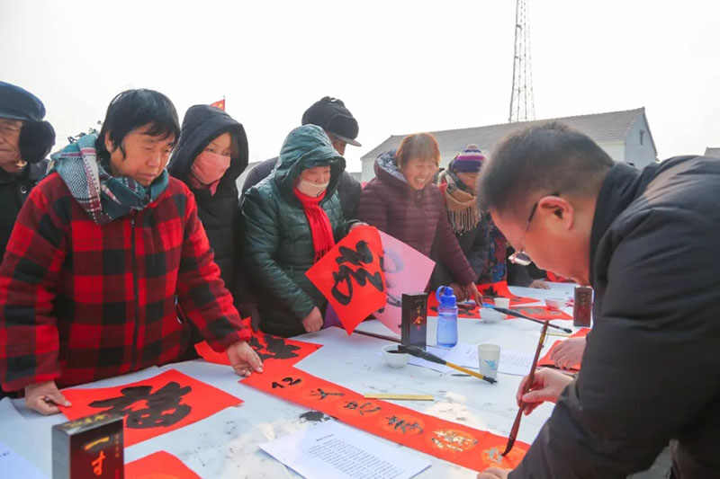 县文联组织书法家为群众现场书写对联,深受村民喜爱。