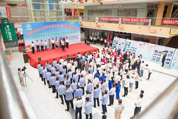 6月18日上午,按照全国统一安排,清丰县2019年食品安全宣传周活动启动仪式在县人民路亿洲时代广场举行,宣传周活动将持续到7月1日,各乡镇在辖区内同步举行。 县委常委、常务副县长岳春青,县人大副主任左海义、县政府副县长周笃铭出席启动仪式,并为食品安全志愿者服务队授旗。
