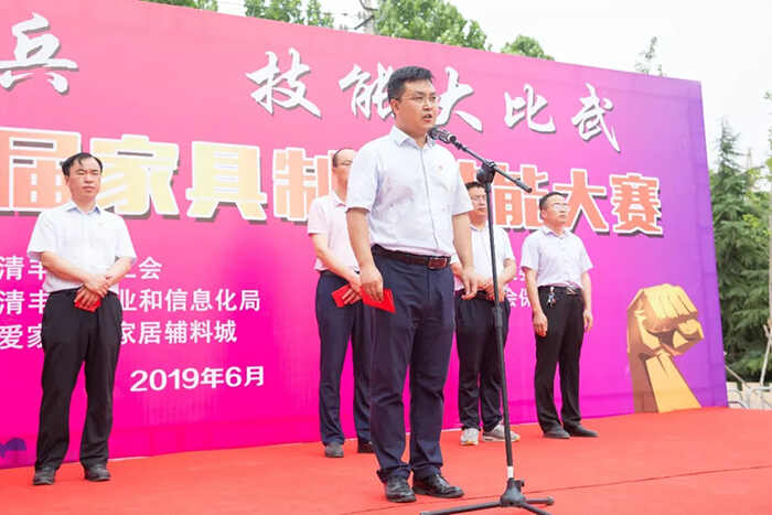 6月20日,清丰县举行第三届家具制作技能大赛。副县长周笃铭、县产业集聚区党工委书记王洪勋、县产业集聚区管委会主任靳卫军出席开幕式。