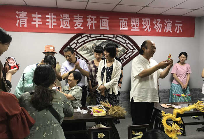 在非物质文化遗产展示馆,营员们饶有兴致地参观了张清丰孝道故事、义兴长小磨香油、五彩纸龙、麦秆龙等展品,讲解员从不同角度对每个展品的历史渊源、发展状态及保护传承进行了详细的介绍;在柳子戏展示馆,柳子戏传承人现唱哼唱了婉转动听的名曲,博得了一片掌声;此次活动还邀请了我县颇具传统特色的非遗项目聂氏麦秆画、陈氏面塑的传承人现场工艺品制作,营员们积极参与互动,虚心学习,制作了惟妙惟肖、栩栩如生的作品。