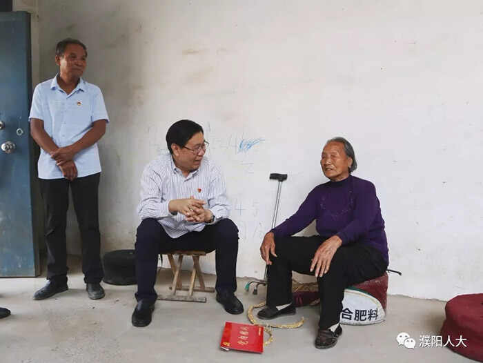 在喜迎新中国成立70周年之际,9月27日,市人大常委会主任徐兰峰赴清丰县阳邵镇霍町村,走访慰问新中国成立前参加革命工作的部分老干部、老党员,为他们送去节日的祝福和慰问金。市人大常委会秘书长刘万英,市人大常委会副秘书长、办公室主任张海录,监察和司法工委副主任张俊波,市委副县级组织员孙小兵,清丰县人大常委会主任杨理宏等陪同慰问。