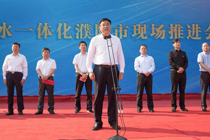 9月29日,城乡供水一体化濮阳现场推进会在清丰县召开。省水利厅副厅长吕国范,省水利投资集团董事长王森,市委副书记邵景良,副市长张连才,县委书记冯向军,县委副书记、县长刘兵等领导出席会议。各县(区)政府分管副县(区)长,开发区、示范区、工业园区管委会分管副主任,各县(区)水利局长,清丰县县级领导干部及县直部门主要负责同志,各乡镇党委书记,以及县水利局、中州水务职工代表、施工企业代表参加会议。