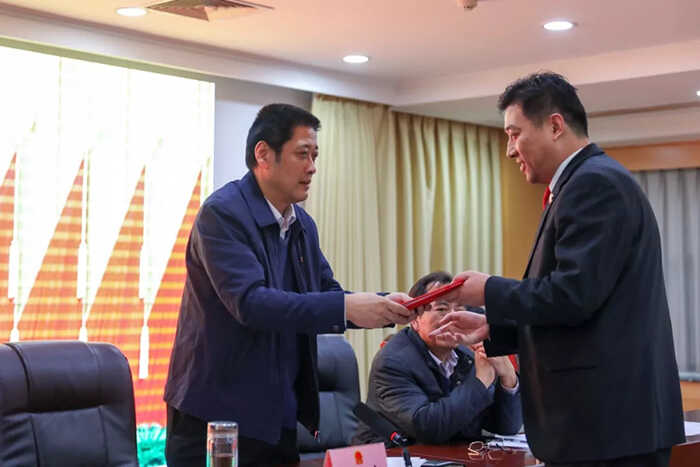 会议表决通过了人事任免案,决定接受韩军辞去清丰县人民法院院长职务;任命赵志学为清丰县人民法院副院长、代理院长、审判委员会委员、审判员;任命杨斌为清丰县人民检察院副检察长、代理检察长、检察委员会委员、检察员。县人大常委会主任杨理宏向被任命人员颁发了任命书,被任命人员进行了宪法宣誓仪式。