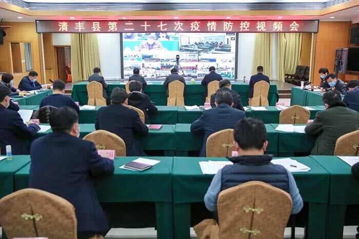 2月22日,清丰县召开新冠肺炎疫情防控第二十七次视频会,冯向军、刘兵、潘奇峰、杨理宏、戚士杰等县领导出席会议,县直有关部门负责人在主会场参加会议,各乡镇有关人员在各分会场参加会议。