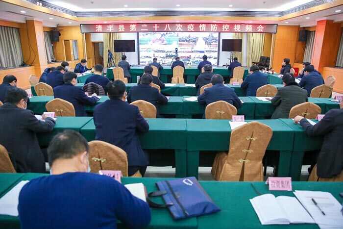 2月23日,清丰县召开新冠肺炎疫情防控第二十八次视频会,冯向军、刘兵、潘奇峰、杨理宏、戚士杰等县领导出席会议,县直有关部门负责人在主会场参加会议,各乡镇有关人员在各分会场参加会议。