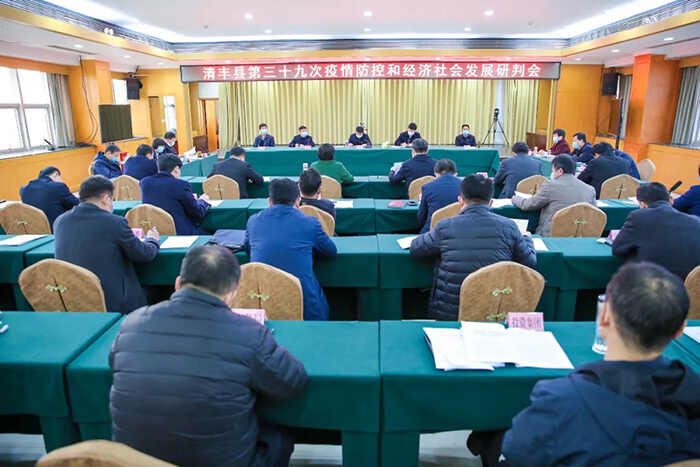 3月3日,清丰县召开第三十九次疫情防控和经济社会发展研判会,县委书记冯向军,县委副书记、县长刘兵,县委副书记潘奇峰,县人大常委会主任杨理宏,县政协主席戚士杰等出席会议,县直有关部门负责人参加会议。