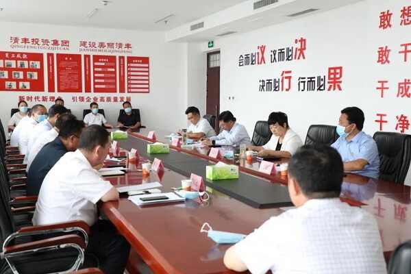 8月16日下午,县委书记曹拥军到清丰投资集团调研指导工作。县委副书记岳春青,县委常委、常务副县长周笃铭,县委常委、县委办公室主任赵勋强和县委办、县财政局、县自然资源局主要负责同志陪同调研。