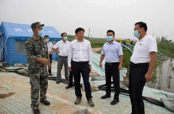 8月22日下午,县委书记曹拥军到卫河苏堤码头、硝河闸、韩村镇、城市管理局督导检查防汛工作。县领导周笃铭、赵勋强以及县委办、县应急管理局、县水利局、卫河河务局、县委县政府督查局主要负责同志陪同。