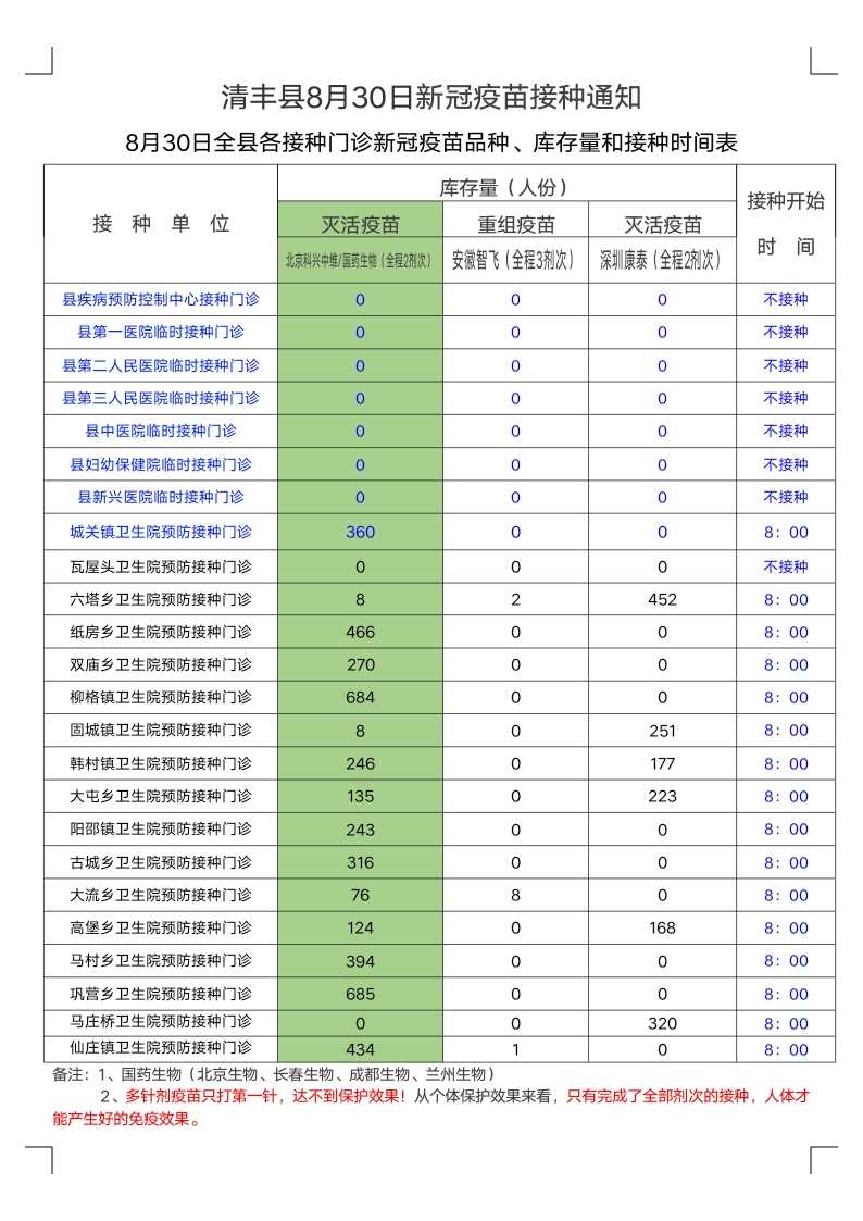 【重要通知】清丰县8月30日新冠疫苗接种通知