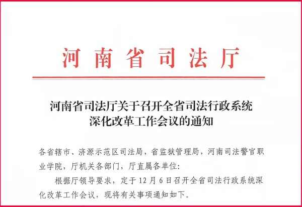 12月6日,在全省司法行政系统深化改革工作会议上,清丰县司法局党组书记、局长杨永超做了题为《聚焦痛点难点 创新体制机制 努力打造社区矫正“清丰模式”》的发言。据悉,在做典型发言的五个单位中,清丰县司法局是唯一的县(区)单位。省司法厅党委书记、厅长赵会生在讲话中高度评价了社区矫正“清丰模式”在体制机制上的系列改革创新,要求全省推广借鉴。