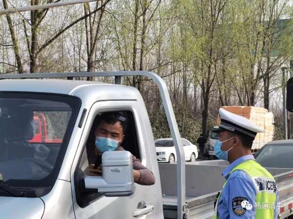 接到防疫指令,交警大队迅速出击,在指定位置设好疫情防控盘查卡点,对入境车辆逐一盘查。执勤民警对过往车辆、人员做好耐心解释、提醒工作,一遍又一遍,口干舌燥,他们依然坚守岗位,用“铁”一般的意志担当尽责,严把疫情防控关,全力以赴筑牢疫情防控线。