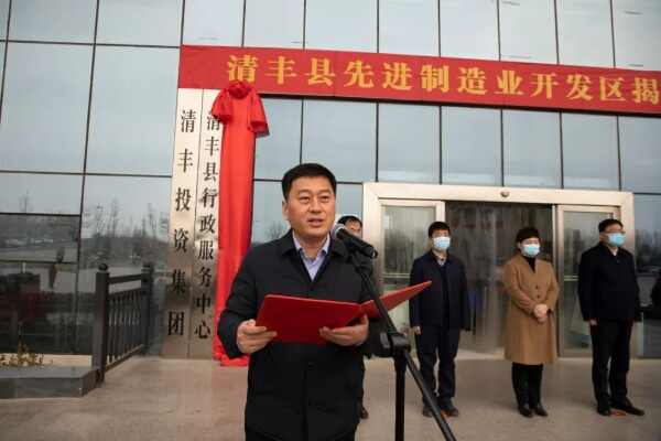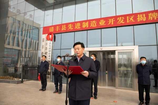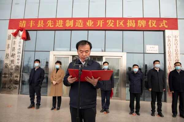 清丰县先进制造业开发区揭牌,是清丰经济社会发展中具有里程碑意义的一件大事,标志着开发区建设发展翻开了新一页、站上了新起点、开启了新征程。清丰县委、县政府将高举习近平新时代中国特色社会主义思想伟大旗帜,深入贯彻党的十九大和十九届六中全会精神,完整、准确、全面贯彻新发展理念,落实省委“一县一省级开发区”重要部署,倾力把开发区打造成具有竞争力和影响力的省级一流开发区,为濮阳建设豫鲁冀省际区域中心作出新的更大贡献。