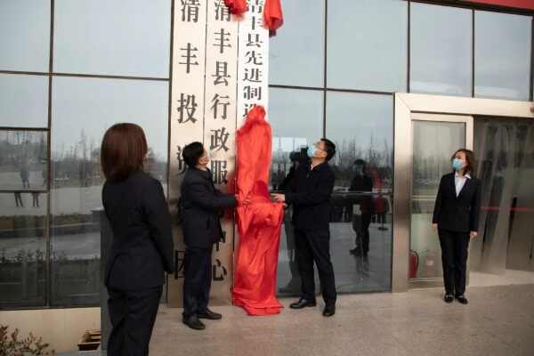 仪式上,市人大常委会主任邵景良、县委书记曹拥军共同为清丰县先进制造业开发区管理委员会揭牌。