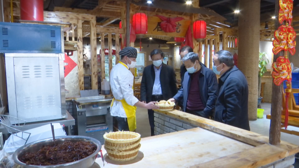 高现军一行先后参观了王氏烧饼摊、“够地稻”小烧饼民间菜、“迎宾楼”的烧饼生产现场,实地查看产品传统手艺制作全过程,与负责人就烧饼的制作工艺、销售渠道、产业规模等方面进行了交流探讨。
