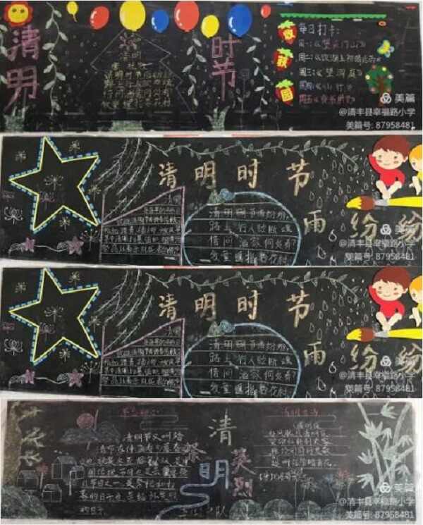 清丰县春晖路小学举办“追寻先烈足迹 传承民族精神”主题活动结合传统节日清明节,开展了丰富多彩的“过清明话清明”活动,包括清明节主题班会、清明节手抄报、网上英雄献祭等活动,深切缅怀革命先烈。