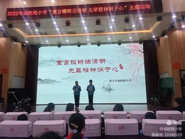 4月2日,清丰县诚睦路小学举行“童言铿锵话清明 先辈精神润于心”主题活动。各年级组各显其能,用精彩的节目表达对于革命先烈的敬仰和告慰。