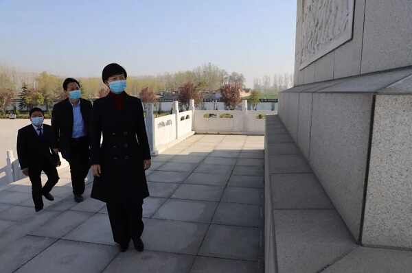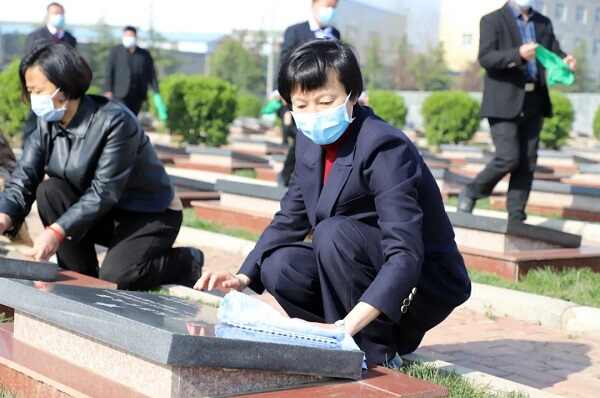 上午9时整,张军英带领退役军人事务局部分工作人员来到庄严肃穆的革命烈士纪念碑前,向为国捐躯的革命先烈集体三鞠躬。随后众人依次上前向革命先烈擦拭墓碑、敬献鲜花,表达由衷的敬佩,献上深深敬意。