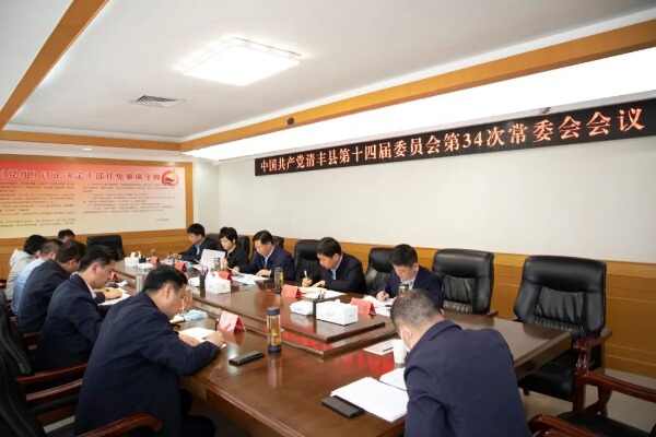 4月15日下午,县委书记曹拥军主持召开中国共产党清丰县第十四届委员会第34次常委会会议,传达学习习近平总书记调研海南时的重要讲话精神和《中共濮阳市委 濮阳市人民政府关于疫情应急处置复盘推演工作总结情况的报告》,专题研究疫情防控、安全生产、生态环保、县“两会”筹备情况等工作,听取审议《清丰县法治政府建设实施方案(2022—2025年)》(征求意见稿)、《清丰县法治清丰、法治政府、法治社会一体建设实施方案》(征求意见稿)。赵丹、岳春青、王建国、丁振强、李养利、程春艳、张红伟出席会议,潘奇峰、戚士杰、张军英、王洪勋、谭自安列席会议。