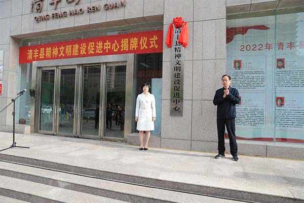 县委常委、宣传部部长、副县长程春艳为清丰县精神文明建设促进中心揭牌并致辞。