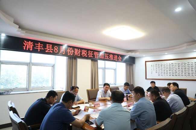 8月22日,县委副书记、县长赵丹召开清丰县8月份财税征管加压推进会议,听取8月份税收征管情况,安排部署下步税收征缴工作。县委常委、常务副县长周笃铭,县开发区党工委书记师敬川,县政府办、督查局、财政局、税务局、自然资源局、房产中心、住建局、国资集团、投资集团等单位负责同志参加。
