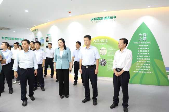 在济宁市金乡县,考察团来到鑫诺食品科技有限公司,参观了大蒜等农产品精深加工、产品检测设备生产线,了解了联农带农经营模式。在山东金恒农产品冷链物流园,考察团了解了金乡县“一主三副”农产品冷链物流发展规划,并就物流园市场配套服务功能、拉长农产品销售周期、延伸产业链条、增加农民收入等进行了深入交流。