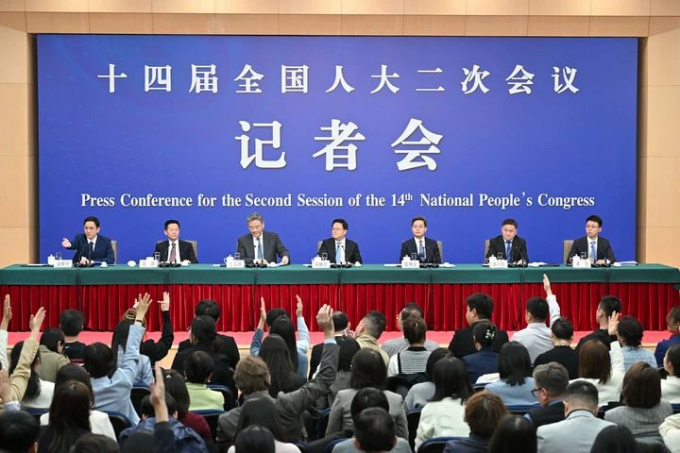 3月6日下午3时,十四届全国人大二次会议在梅地亚中心新闻发布厅举行记者会,邀请国家发展和改革委员会主任郑栅洁、财政部部长蓝佛安、商务部部长王文涛、中国人民银行行长潘功胜、中国证券监督管理委员会主席吴清就发展改革、财政预算、商务、金融证券等相关问题回答中外记者提问。