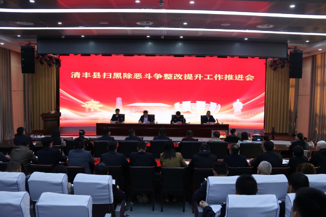 4月9日,清丰县组织召开扫黑除恶斗争整改提升工作推进会议,主要任务是深入学习贯彻习近平总书记对政法工作的重要指示精神和习近平总书记在中部地区崛起座谈会上的讲话精神,落实中央和省、市、县委政法工作会议精神,总结经验、分析形势、查找不足,安排部署工作。县委政法委分管日常工作的副书记、县扫黑办主任师俊峰对今年工作作出具体部署,提出明确要求。各乡(镇、办)政法委员、各成员单位分管副职、各派出所所长、扫黑除恶专业队及县扫黑办全体参加会议。