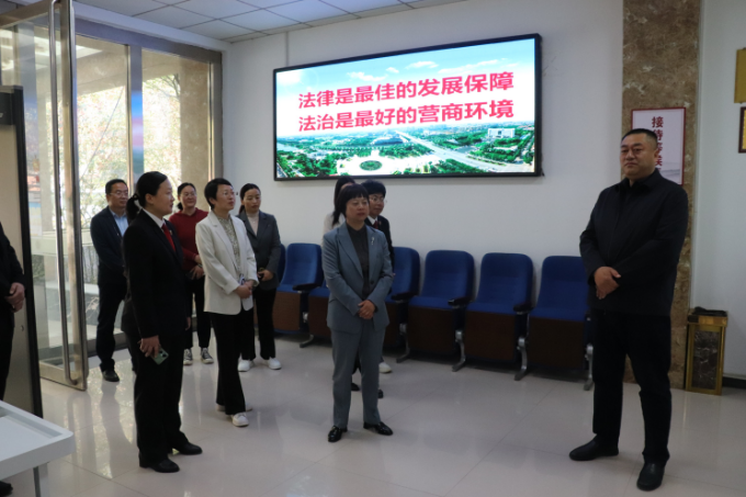 4月11日,县人大常委会副主任、县总工会主席葛英华带领部分县人大代表,调研县法院关于民营经济发展司法保障工作情况,县法院院长赵永正陪同。