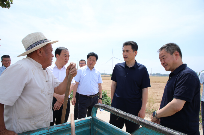 在韩村镇库韩村收割现场,高尚功走进垄头查看麦穗,与种粮农户、基层干部深入交流,详细询问夏收进度、小麦产量、机收组织、农户收入、种植结构等情况。高尚功指出,当前正值“三夏”工作关键期,要坚决扛稳粮食安全重任,把“三夏”工作作为当前头等大事来抓,坚决打好打赢夏收工作攻坚战;要科学有序调度,加强天气监测和会商研判,统筹抓好田间管理、农机调度、应急抢收、烘干晾晒、道路保通、夏粮收购等各项工作,全力以赴完成“三夏”生产任务;要因地制宜积极推进夏种夏管工作,统筹抓好秋粮播种、农资供应、秸秆禁烧、防汛抗旱等工作,为全年粮食稳产增产打牢坚实基础。