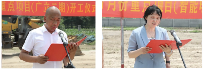 仪式上,县委书记高尚功宣布:清丰广立家具有限公司二期项目、智能电子科技项目开工!