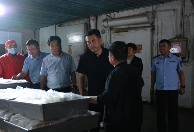 在永官食品有限公司,高尚功深入生产车间认真查看,并指出,要深刻认识做好食品安全工作的极端重要性,用最严标准抓好食品安全监管;要持续提升管理水平,加强食品从业人员培训,严把生产加工重要关口,从源头严管、从过程严抓,确保消费者吃得健康、吃得放心。