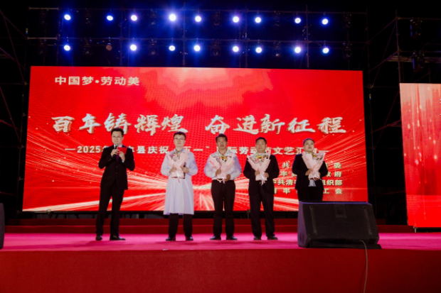 为庆祝中华全国总工会成立100周年暨“五一”国际劳动节,大力弘扬劳模精神、劳动精神、工匠精神,4月29日晚,由县委、县政府主办、县委组织部、县总工会承办的“中国梦·劳动美 百年铸辉煌 奋进新征程”清丰县2025年庆祝“五一”国际劳动节文艺汇演在清丰“蘑菇点灯”露营基地隆重举行。