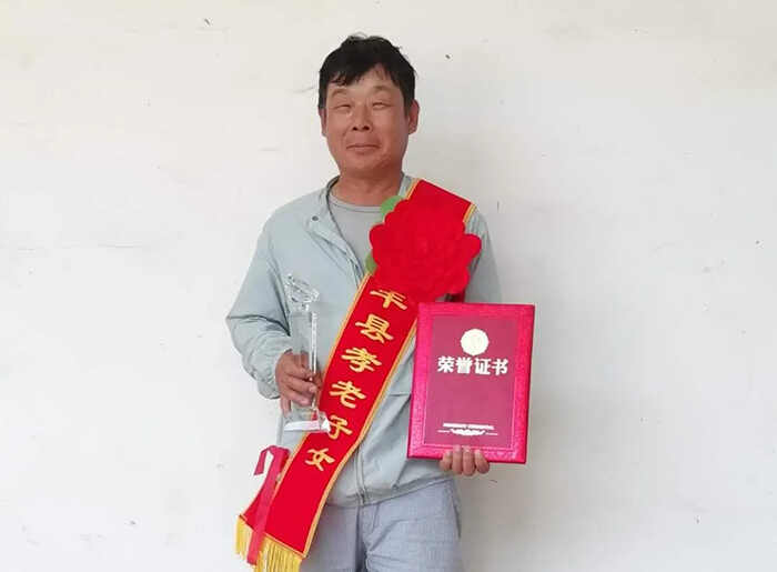 现在在农村种地的王孝忠,每天起床的第一件事就是给父亲倒尿壶,背着父亲上厕所,给他倒水洗脸。一日三餐,一口一口地喂老父亲。天气热了,就用毛巾给父亲擦擦身体,经常换洗一下衣服,还经常给父亲泡泡脚。因为推着轮椅不方便去给老父亲理发,于是就自己买了一个推子,尝试着学理发,不到两年的时间已经用坏了两个推子,但理发技术也越发熟练和高超了。在农忙之余,推着父亲去村里散散心,还给父亲买了两三个放唱机,让老人听听戏和说书之类的,陪父亲解闷。天冷时,怕老人因为双腿不会动,不方便盖被子,就常年地陪着父亲睡在一间房里,半夜经常起来给父亲盖好被子。一个大男人能做到如此细致地照顾老人,实在不易。