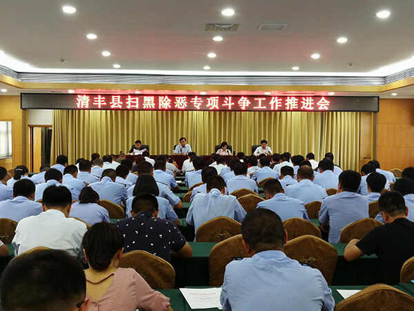 7月5日下午,清丰县在综合楼九楼会议室,召开全县扫黑除恶专项斗争工作推进会。县扫黑除恶专项斗争领导小组及办公室组成人员,各成员单位负责同志,各乡镇分管政法工作副书记,政法各单位相关部门负责人,共计100余人参加会议。县委常委、政法委书记岳洪波,县政府副县长蒋智敏,县法院党组书记、院长韩军,县公安局党委书记、局长薛洪敏出席了会议。蒋智敏同志主持会议。