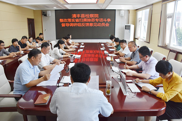 8月20日,清丰县检察院召开整改落实省扫黑除恶专项斗争督导调研组反馈意见动员会,学习上级文件精神,院党组书记、检察长王克臣对整改工作提出要求。院党组成员、专职委员、各科室负责人及涉黑办案组人员参加会议。