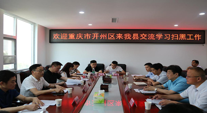 重庆市开州区学习交流组的同志均表示我县扫黑除恶工作成绩显著,有很多可借鉴的好经验、好做法,在以后的工作中希望能多沟通,互通有无,进一步提升两地扫黑除恶专项斗争的工作水平。