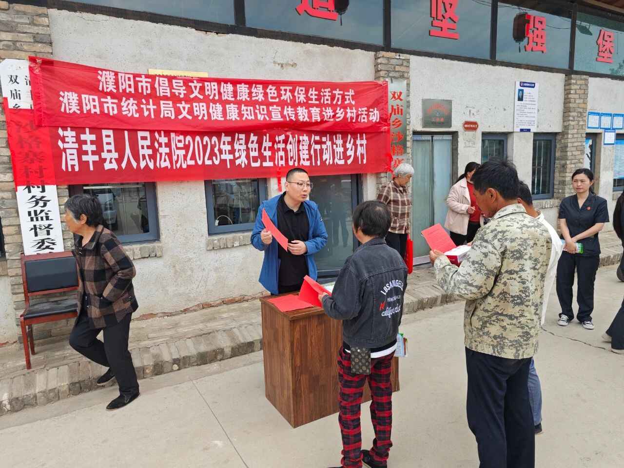 为持续倡导文明健康绿色环保生活方式,5月25日,濮阳市统计局、濮阳市第二人民医院(市眼科医院)、清丰县人民法院联合发起送文明健康进乡村行动,组织倡议宣教、专家义诊、健康科普等活动,让清丰县双庙乡沙格寨村居民在自家门口享受到优质医疗服务和文明健康教育,大大提升了村民的幸福感。