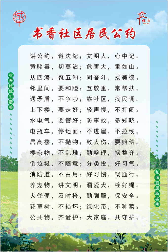 “这《村规》《公约》读起来郎朗上口,内容不仅接地气还好记,一下子俺都记住了……”居民王大爷由衷地说道,“有了《村规》和《公约》,以后遇事就得商量着办,按照规矩办……”一个个约定,一条条规范,正在不断激发着居民自治内生力和活跃力,渐渐地衍变成为辖区居民群众行为准则的新“标尺”。现在辖区内,人居环境明显改善了、环境更美了、参加志愿服务和热心公益的居民更多了……看得见的环境在悄然变化,看不见的文明乡风已悄入心田。
