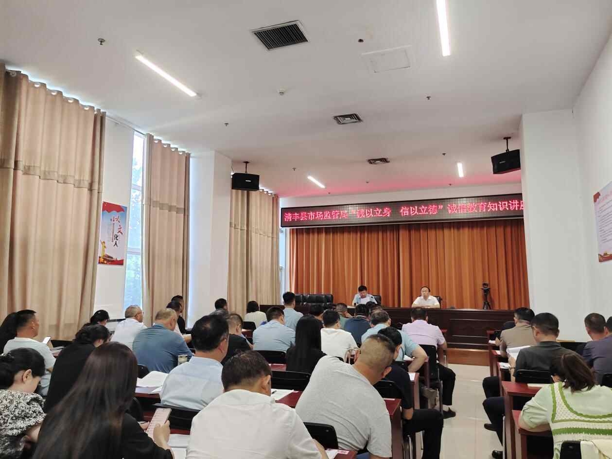 为弘扬诚信美德,营造诚实守信的良好氛围,进一步提高市场主体诚信意识,提升市场主体形象,6月17日上午,清丰县市场监管局邀请全县部分企业、商户80在二楼会议室开展“诚以立身 信以立德”诚信教育主题知识讲座,讲座由党组成员、副局长宋建岭主持,党组书记、局长李宗轩宣讲。