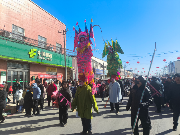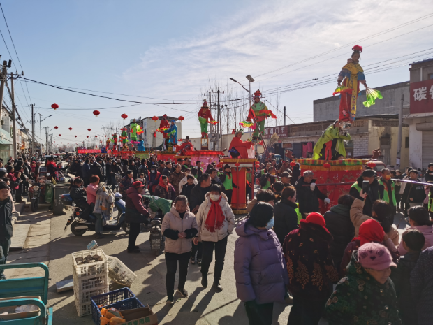 在大屯集村,一场别开生面的抬阁背阁文艺演出活动吸引了众多村民和游客的目光。其中,抬阁由大屯集村精心组织,阁台上,演员们身着华丽的服饰,通过细腻的表演,将历史人物和神话传说演绎得栩栩如生。阁台下的村民们则以稳健的步伐和默契的配合,将阁台高高抬起,仿佛将观众带入了一个穿越时空的奇妙旅程。与此同时,贺庄村举办的背阁表演同样精彩纷呈,背阁演员们背负着阁台,通过高超的平衡技巧和生动的表演,将阁台上的小演员稳稳地托起,展现出了一幅幅生动有趣的画面,赢得了观众们的阵阵掌声和欢呼声。