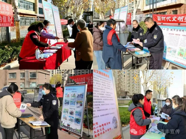 活动现场,各单位按照各自承担的宣传任务,立足群众需求,通过悬挂条幅、设立咨询台、发放宣传资料、赠送实用礼品、健康义诊等多种形式进行了广泛宣传。向居民普及宪法、民法典、未成年人保护法、家庭教育促进法等常用法律,增强居民法治观念;宣传“文明餐桌”“反对浪费”、文明养犬、绿色环保等生活理念,引导形成节约、文明、健康的生活方式;开展血压血糖测量及常见病防治讲解,提升居民健康意识;宣传文物保护法、非物质文化遗产法等,提升居民保护文化遗产的自觉性;对安全用电、用气等消防安全知识进行讲解,提升居民安全意识和防范能力;同时围绕道路交通安全、反诈骗、禁毒等开展宣传教育,切实提高群众防范能力,营造更加安全、文明的生活环境。