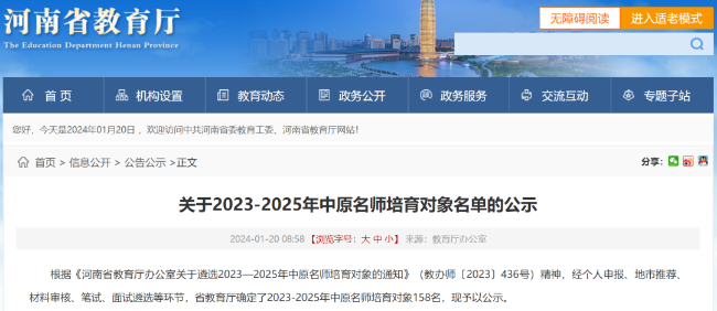 1月20日,河南省教育厅网站发布公示