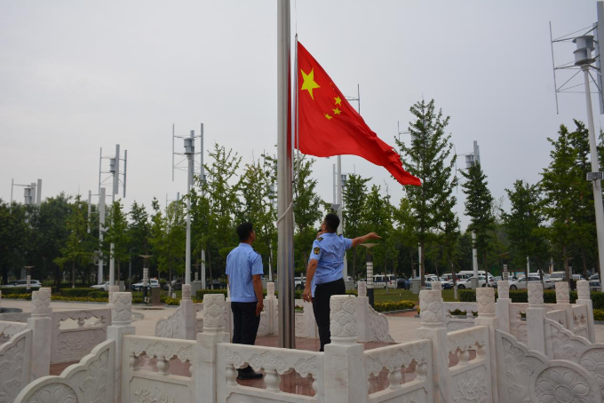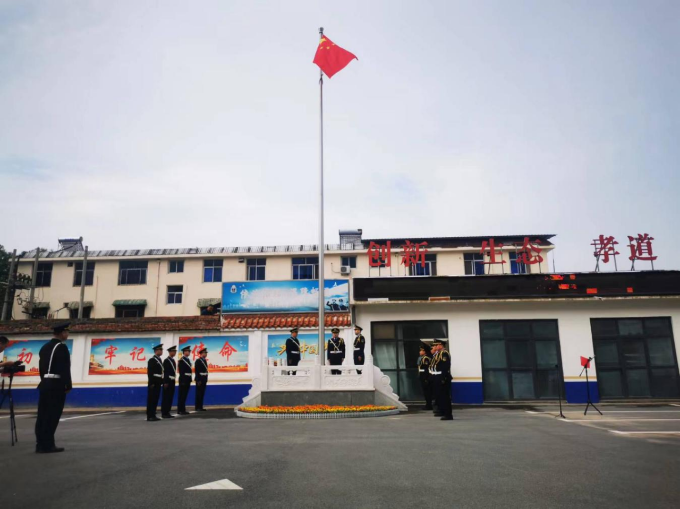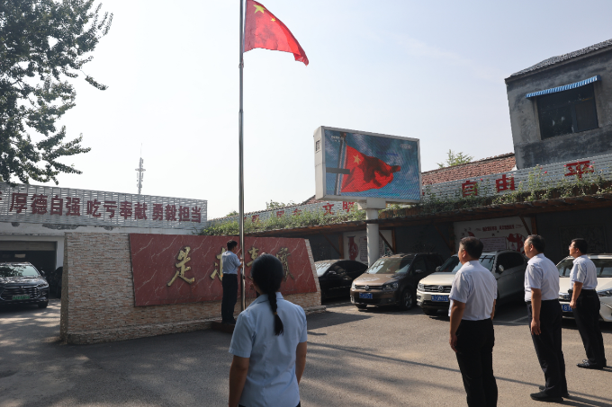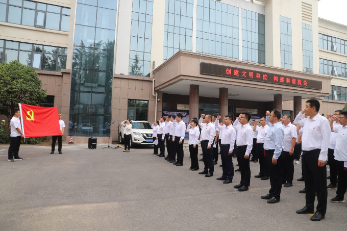 上午8时,举行庄严的升旗仪式,升国旗,奏唱国歌,全体人员行注目礼。随后,工作人员请出党旗,全体党员面向党旗,重温入党誓词和入党申请书,并为七月份入党党员过集体政治生日。