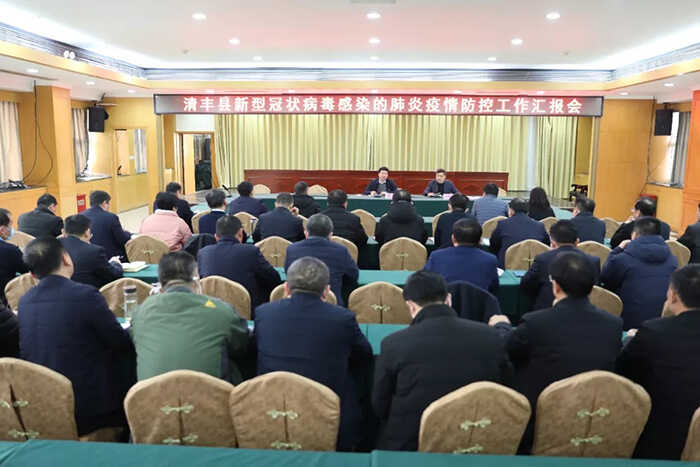 1月25日,清丰县召开新型冠状病毒感染的肺炎疫情防控工作汇报会。县委副书记、县长刘兵,县政府副县长韩晓东出席会议并听取各乡镇、相关单位的疫情防控工作汇报。