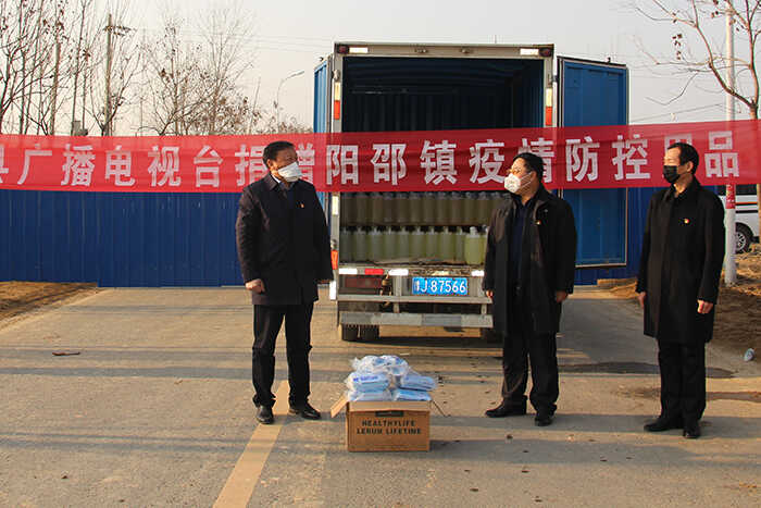 病毒无情,人间有爱。突如其来的一场新型冠状病毒感染的肺炎疫情,打乱了国人新春的步伐,却打不垮万众一心、众志成城战胜疫情的信心和决心。自新型冠状病毒感染的肺炎疫情在该镇发生以来,阳邵镇反应迅速,全体干部职工始终坚守在疫情防控第一线,因防护物资消耗大,库存严重不足,急需相关物资,在此危急时刻,清丰县广播电视台雪中送炭,由台长邵志强、副台长潘帅谦引导运送物资车辆为该镇送来防护口罩2000个和84消毒液400壶共计两吨,保障了防治工作有序进行,确保了该镇人民群众及一线工作人员生命安全。