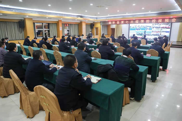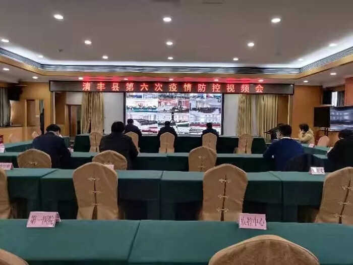 2月2日,清丰县先后召开第六次和第七次疫情防控视频会。冯向军、刘兵、潘奇峰、杨理宏、戚士杰等县领导出席会议,县直有关部门负责人在主会场参加会议,各乡镇有关人员在各分会场参加会议。