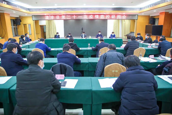 2月11日,清丰县召开第二十一次新冠肺炎疫情防控研判会。县委书记冯向军,县委副书记、县长刘兵,县委副书记潘奇峰,县人大常委会主任杨理宏,县政协主席戚士杰等出席会议。