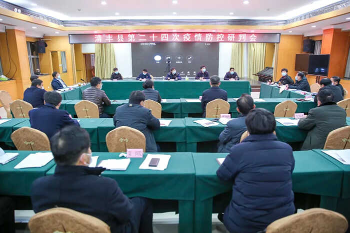 2月14日,清丰县召开新冠肺炎疫情防控第二十四次研判会,县委书记冯向军,县委副书记、县长刘兵,县委副书记潘奇峰,县人大常委会主任杨理宏,县政协主席戚士杰等出席会议。